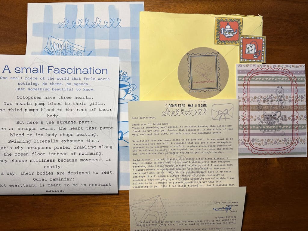 My warm butter post letter was a gift packaged and delivered intention, a moment of mindfulness, aesthetic awe and introspective reflection that is needed in this day and age. Thank you Mak for creating this experience, I’m excited for the next one!